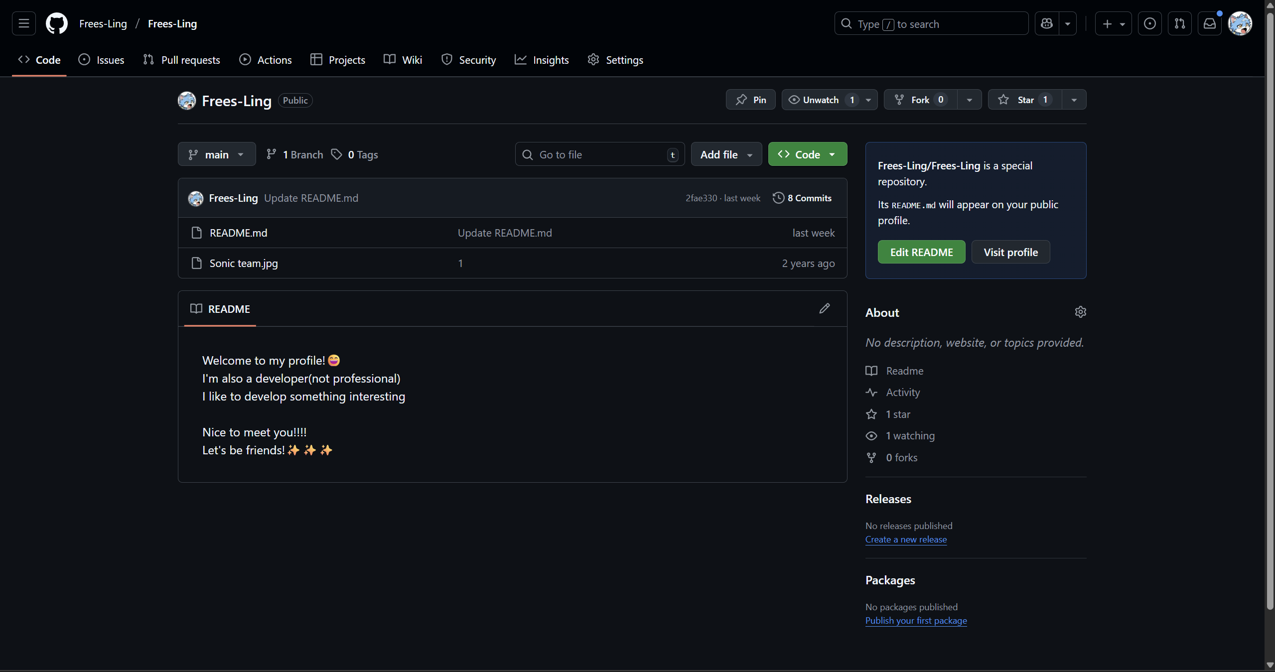 - 这个仓库的名称需要与你注册账户时的账单名称一致,比如我叫Frees-Ling,那么我创建的仓库名称也必须是Frees-Ling